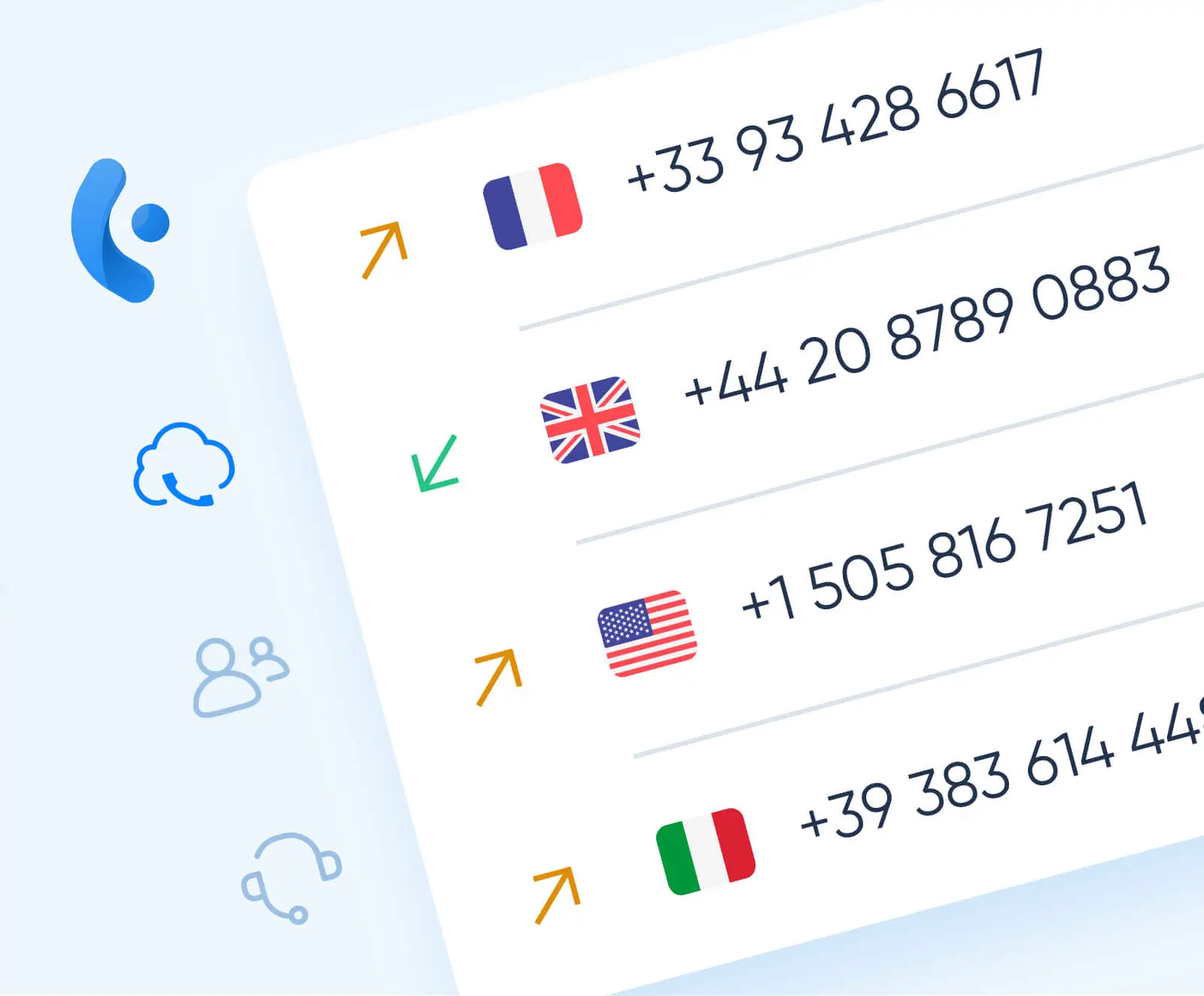 Get closer to your customers with virtual numbers. Personalize your greeting, music and call scenario for a telephone experience tailored to your needs. No hardware required!